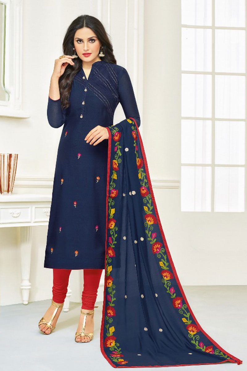 Blue-Indian-Festival-Wear-Modal-Embroidered-Designer-Salwaar-Suit-With-Banarasi-Silk-Dupatta